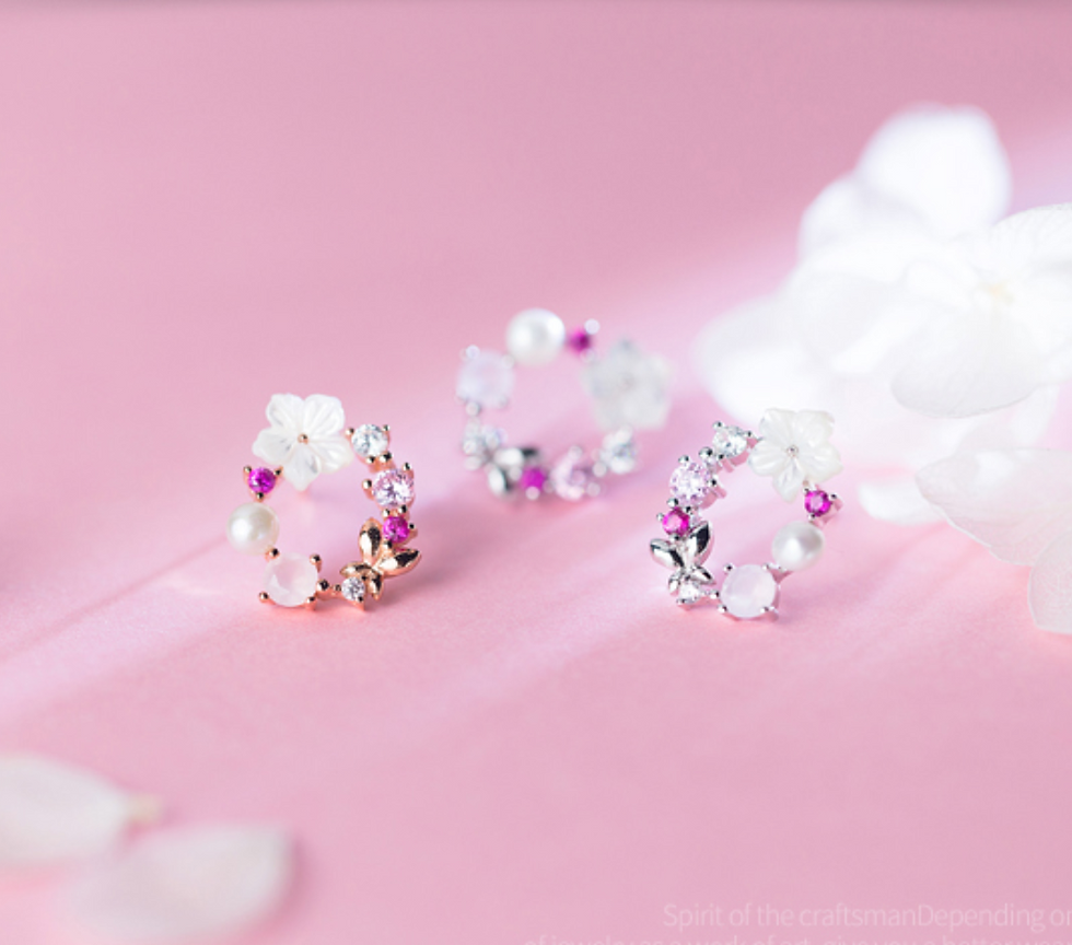 Wreath with Sakura and Stone 925 silver Studs - Mooii