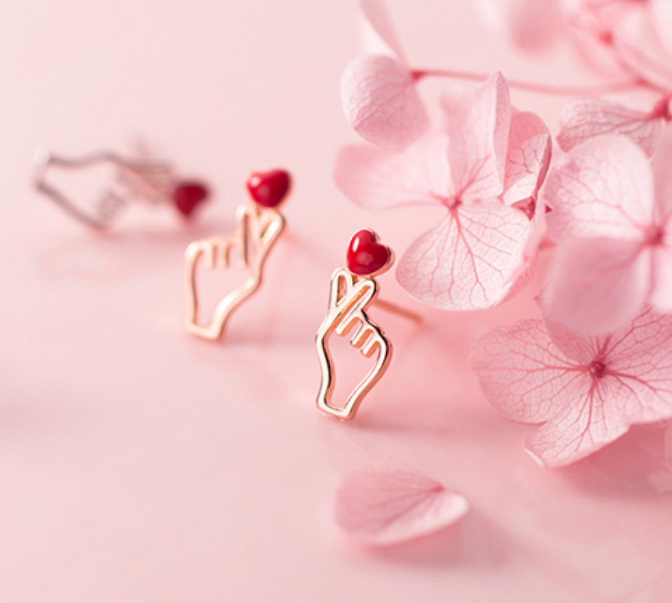 Finger heart Love You Gesture 925 Silver Ear Studs - Mooii